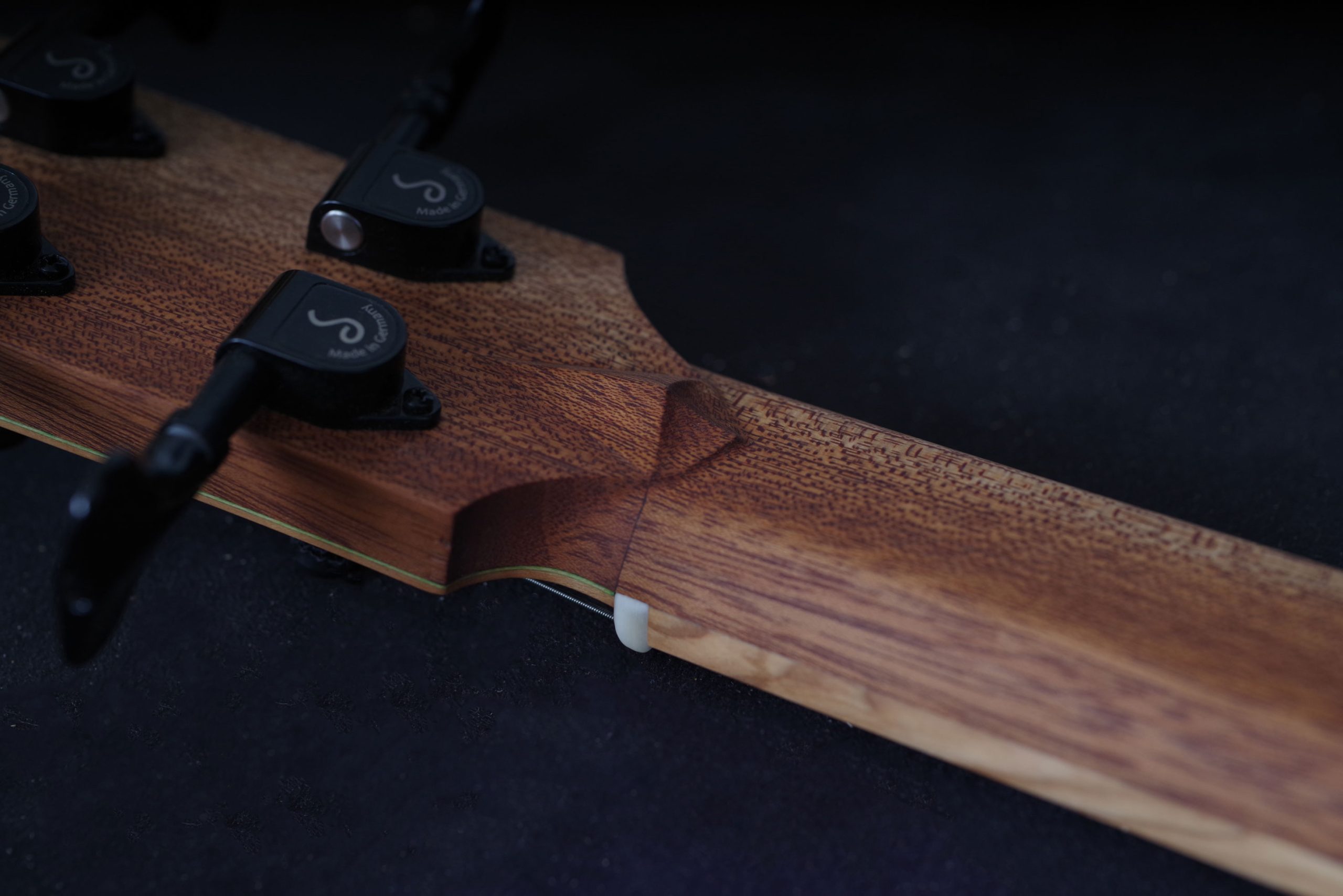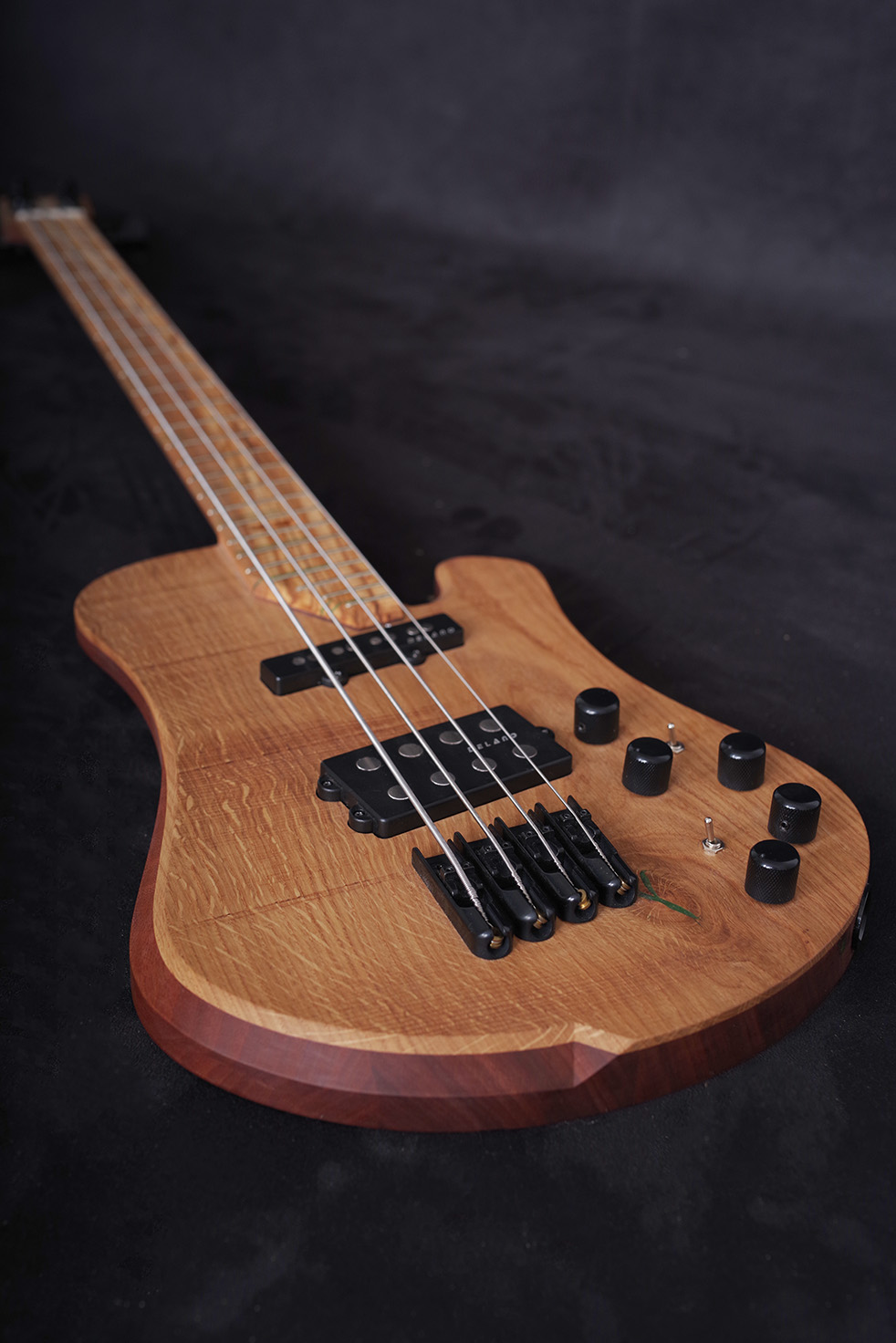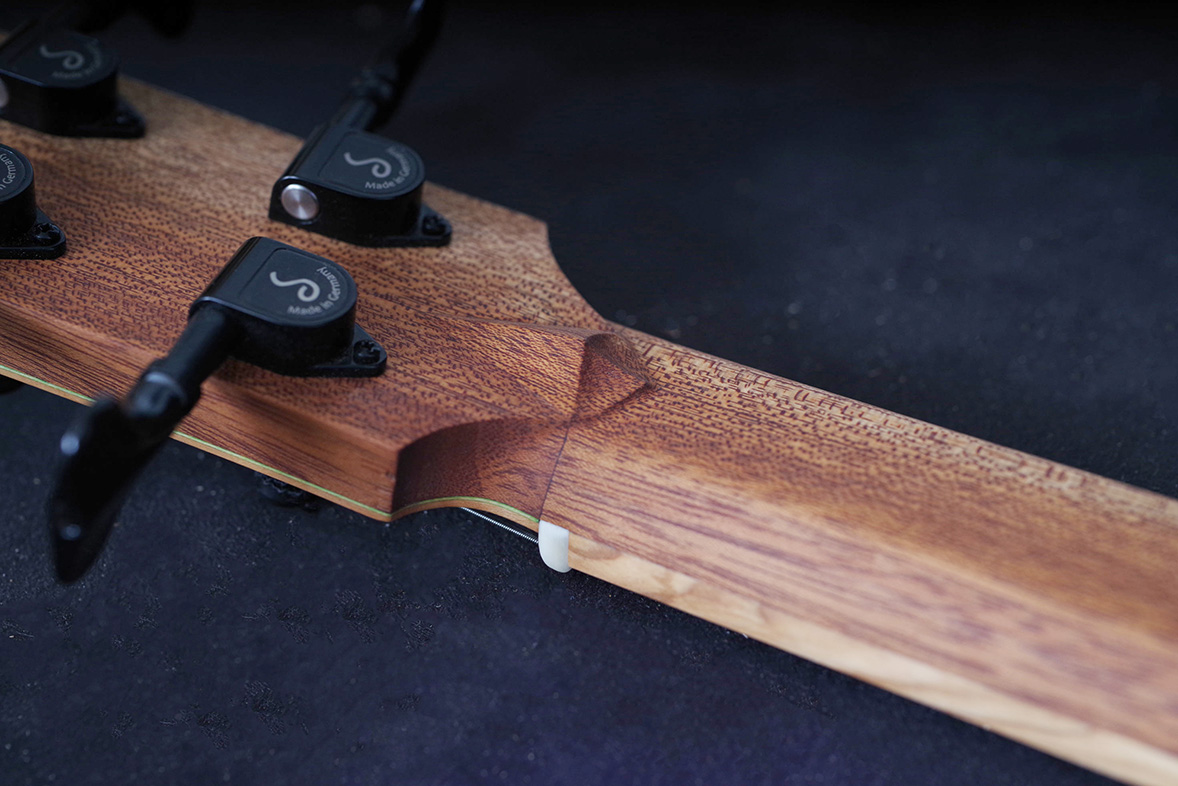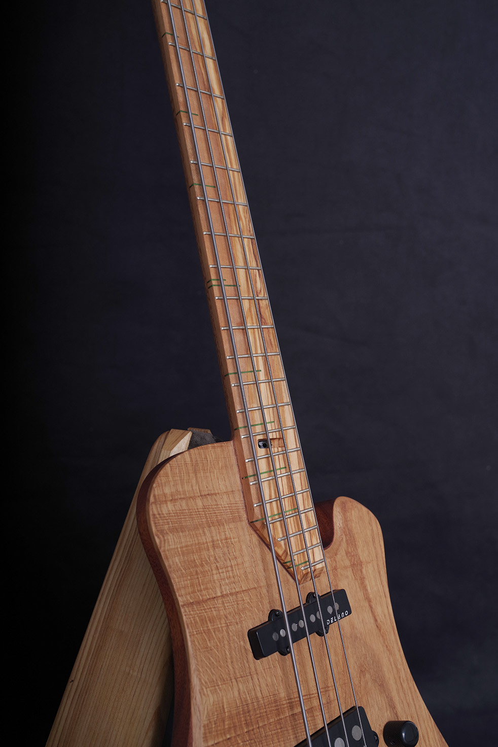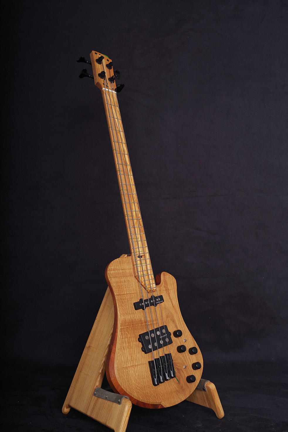 A top made of oak and a fingerboard of olive wood give the instrument a distinctive look with unique grain patterns.